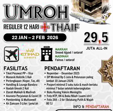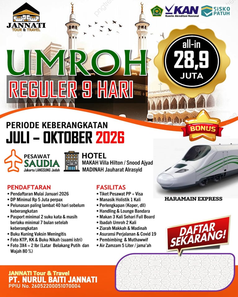 Nikmati perjalanan spiritual dengan layanan terbaik dan nyaman dari kami.