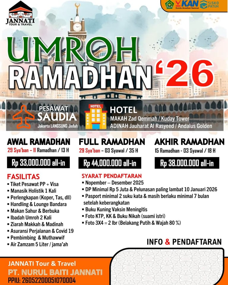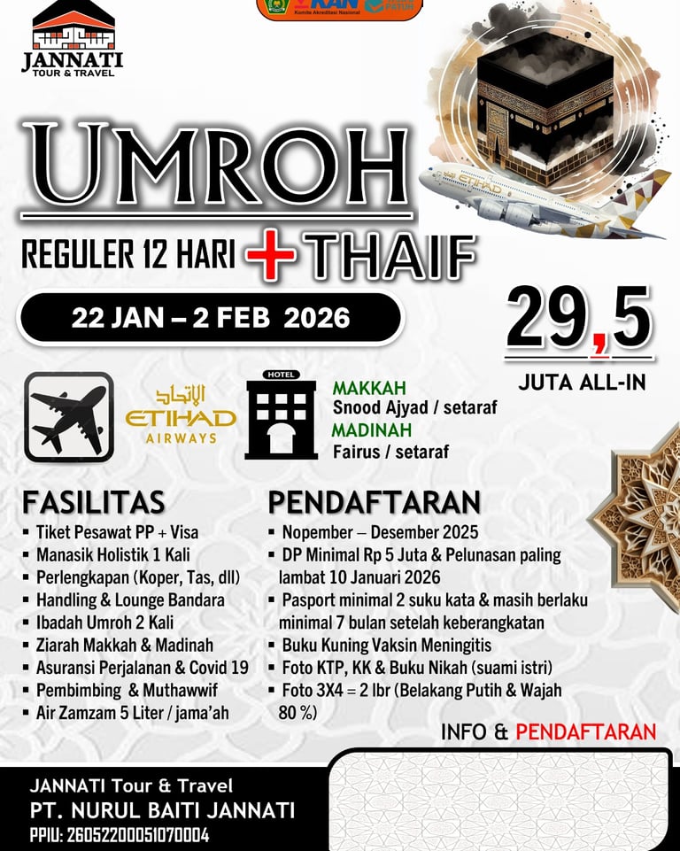 Niatkan perjalanan ibadah umroh anda bersama Jannati Travel